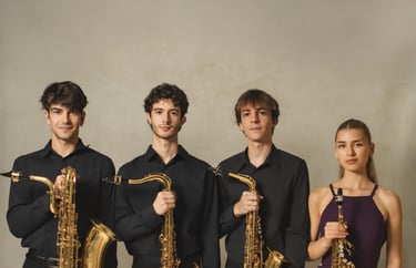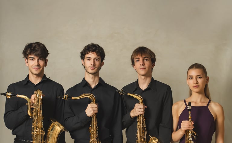The Mezzo Quartet has achieved remarkable success in the international chamber music scene, performing with equal mastery in 19th-century repertoire and in the works of today’s composers. Their artistry has been recognized with numerous prizes in prestigious competitions, confirming both their technical excellence and musical sensitivity. The ensemble has appeared at renowned festivals, such as the FISP in Portugal, and works regularly with contemporary composers, bringing new music for saxophone quartet to life.